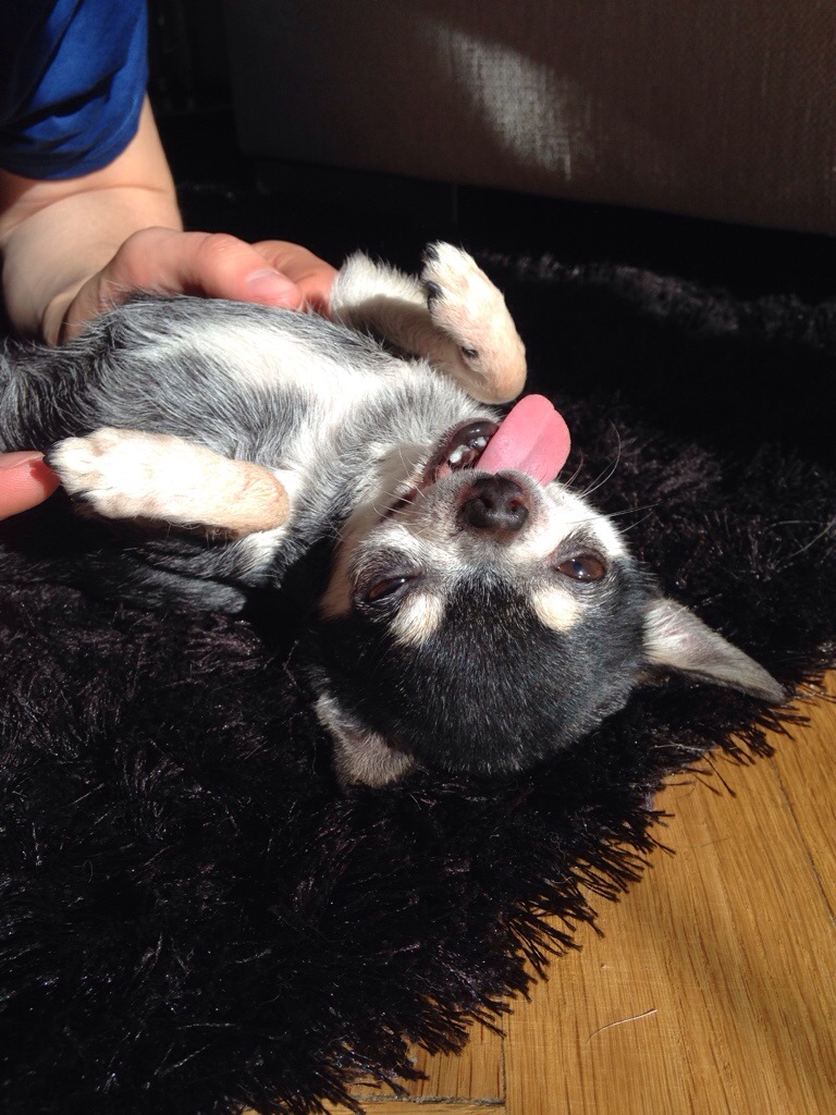 (helt offtopic bild men Sintra var så himla söt i går morse, solen sken in och värmde och hon villa bara kela med husse på mattan hela morgonen, världens gulligaste hund!)