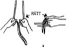 Ledande tygeltag visar hästen vägen vid en vändning. Tygeltaget tas rakt ut från hästens hals. Tummen pekar utåt.