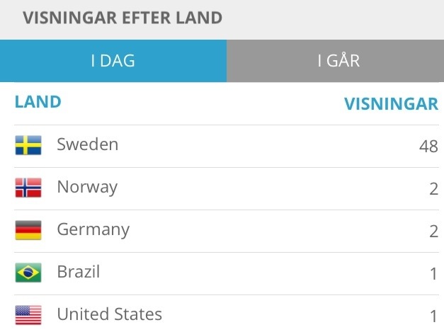 Just det! Min statistik sköt i höjden häromdagen med 290 visningar och över 160 unika besökare. Jättekul! Nu börjar siffrorna dala ner till mer normala nivåer men jag har sett att ni besökare är mer spridda över världen än förut, häftigt!