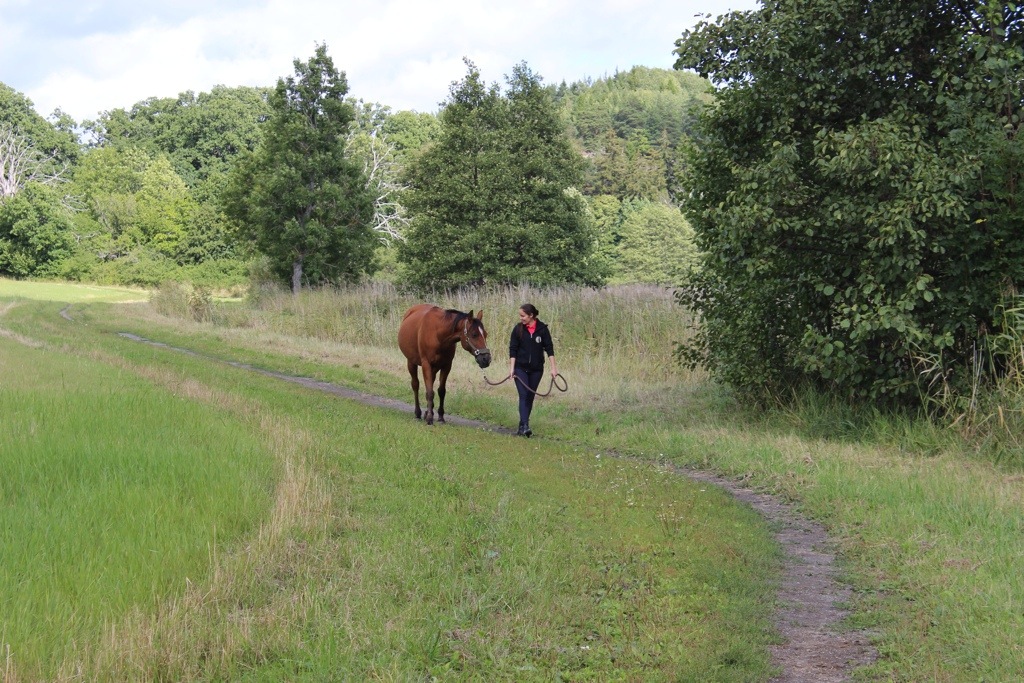 Jag testade att stanna, gå, stanna, gå, öka lite, trava lite kort. Ville helt enkelt känna att han följde med och det gick jättebra. Emellanåt fick han för sig att äta längs vägen men han var aldrig omöjlig att få med sig.