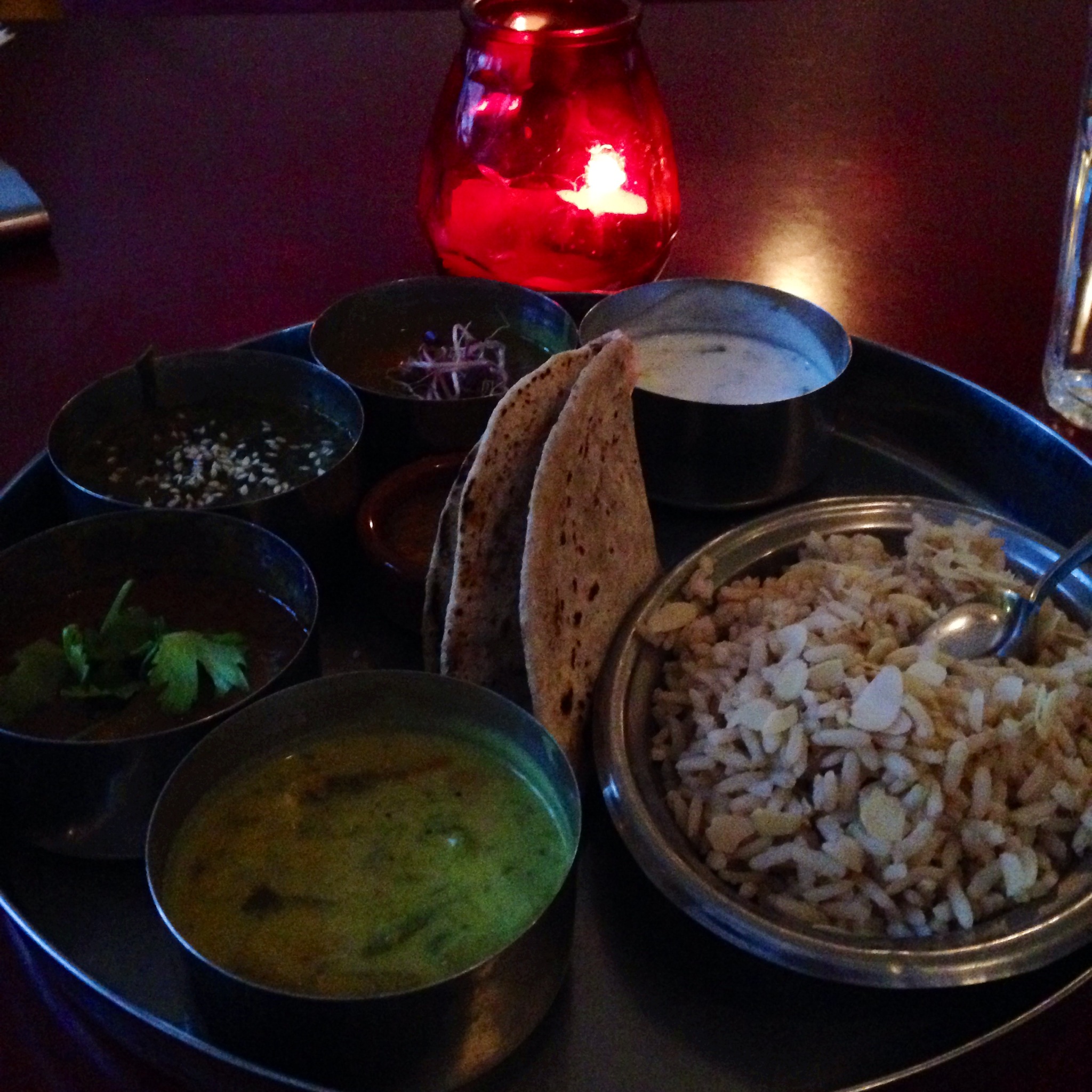 Japp, jag hittade ett mysigt vegoställe här i Amsterdam och här sitter man på plädar (faktiskt fårskinn, vilket jag tycker är lite otippat) på golvet och äter. Mysigt tycker jag! Skönt att slänga av sig skorna och inte bry sig så mycket om hur man sitter och ser ut.