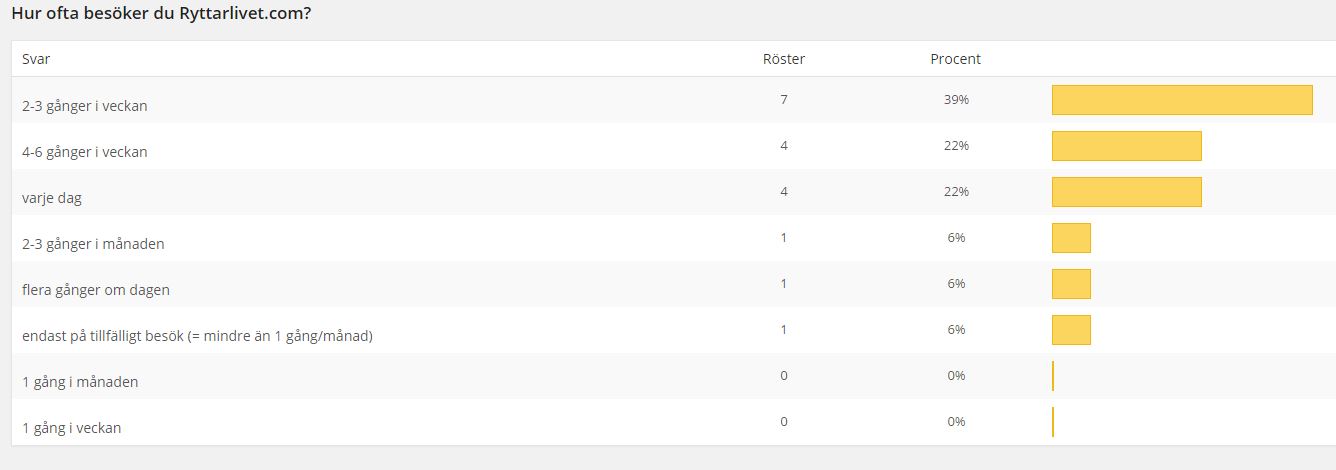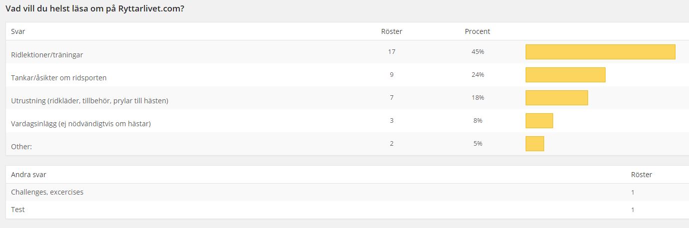 Men nu tänkte jag visa er resultaten från de två omröstningarna som synts här på bloggen. Tack alla ni som var med och röstade. Så här har ni svarat: