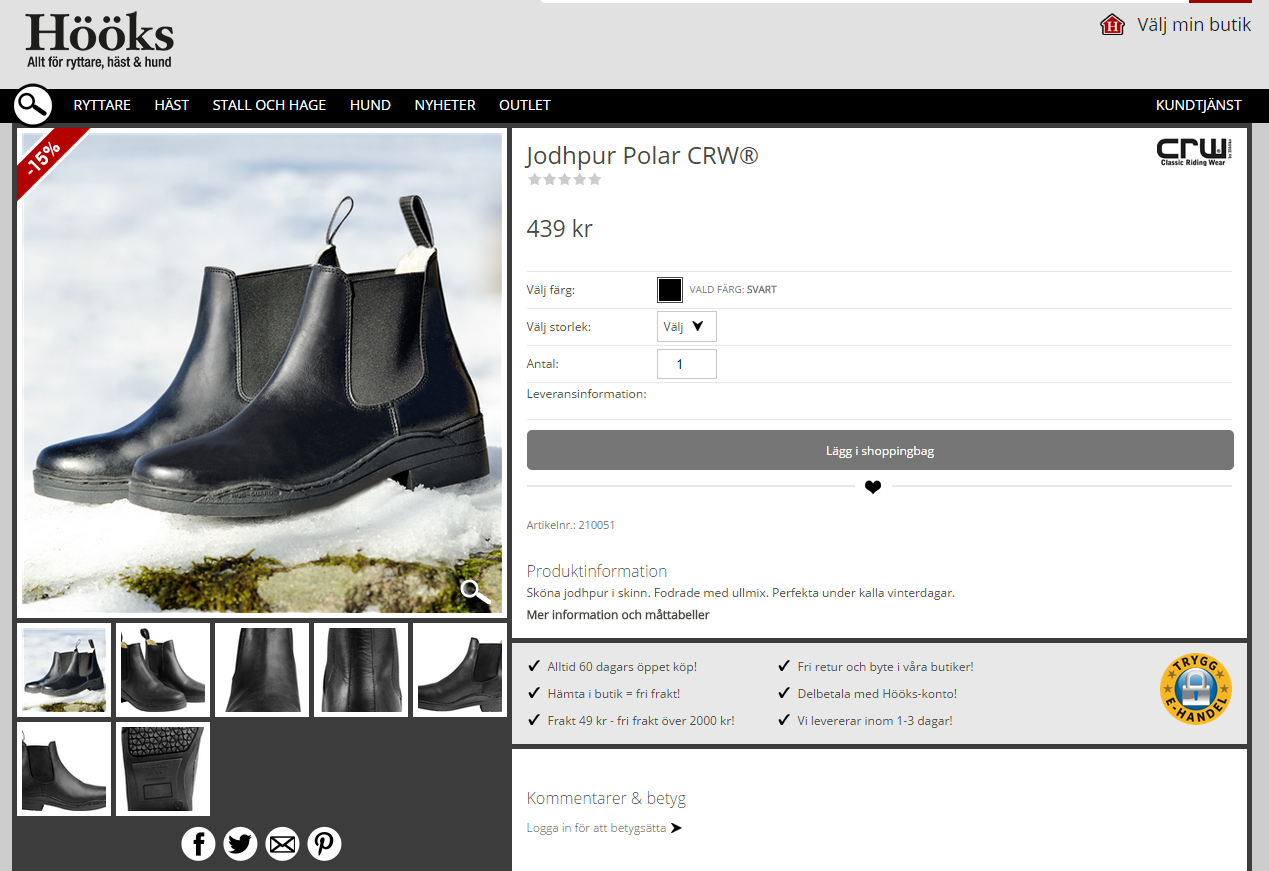 Det är möjligt att de här är bra, just de har jag inte testat! Har haft två andra vskor från hööks, och de båda har spruckit i sulorna efter mindre än en säsong. Å andra sidan använder jag dem ju rejält (varje dag) men ändå.. Njet, tyvärr för dålig kvalitet för mina behov! Jag skulle rekommendera Mountain Horse, Ariat, Blundstone eller Graninge. Ullsulor för 50 spänn är också en hit, ull värmer bättre än alla dessa fuskpälsfoder i syntet tycker jag! Mät gärna stigbyglarna du brukar rida i så du inte köper för breda skor. Det har jag också lyckats med (såklart) och det är inte kul att ha stigbyglarna längst ut på tån, haha! Eller så är det bara för att jag har så stora fötter, folk som har 37-38 kanske inte är med om det? 😉