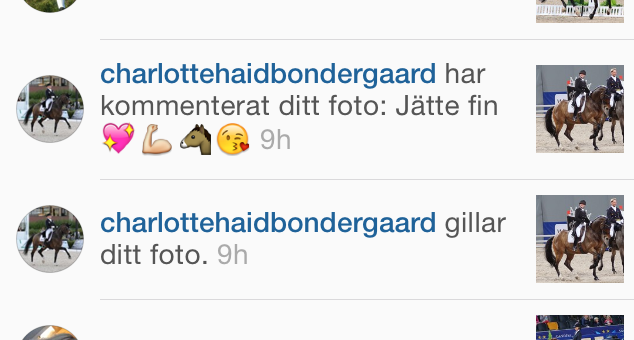 Charlotte Haid Bondergaard har gillat två bilder på min insta – och kommenterat med emojis och allt!