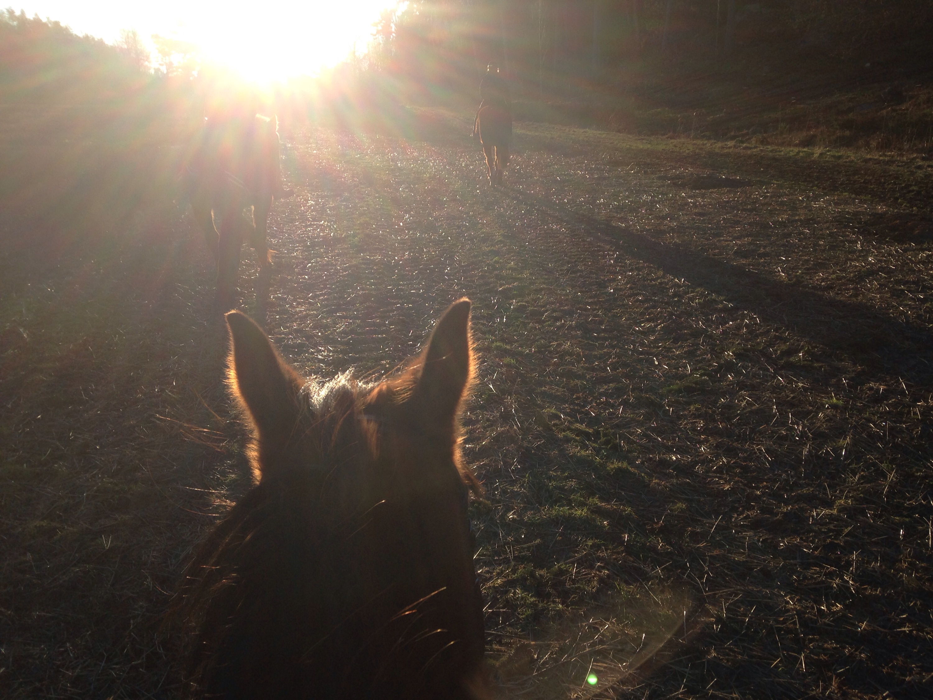 Vi kom hem ganska sent, efter midnatt och jag sov så himla skönt i natt! Vaknade vid nio och halv elva tog jag bilen ut till stallet och Leon. Vi red ut tillsammans med två andra ekipage. Superhärligt och mysigt med den strålande solen och trevligt sällskap!