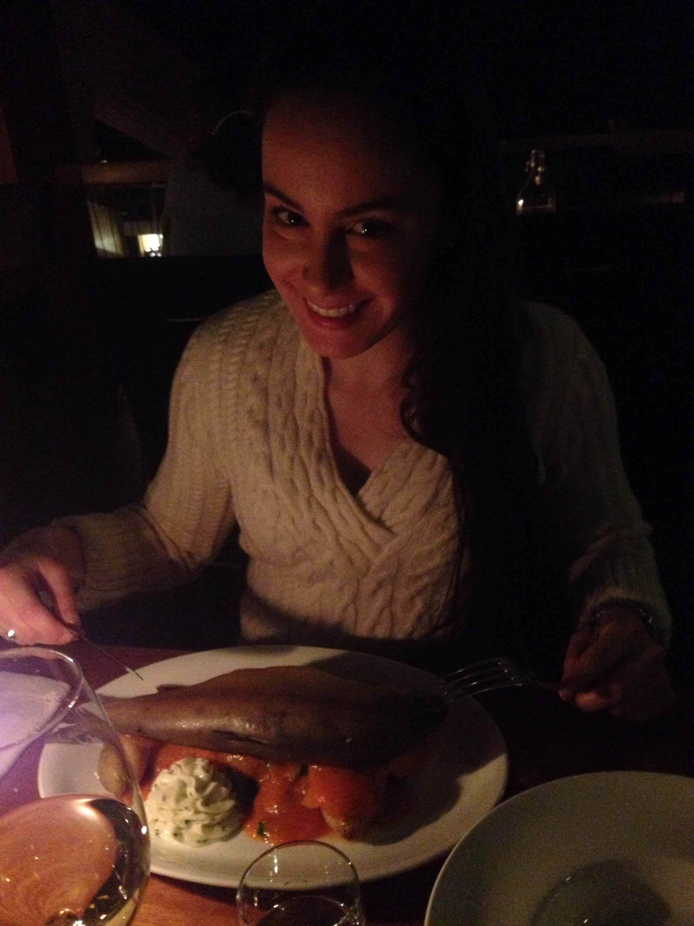 Haha! Uppmärksamt av dig 🙂 Jag äter aldrig fisk, har aldrig gjort men här testade jag en liten bit av Andreas röding och dagen efter åt jag en själv! Stort! 😉