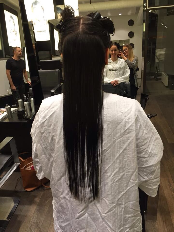 Min syssling går en traineeutbildning hos Toni&Guy och igår kväll fick jag agera modell när hon skulle öva på att kippa rakt (vilket jag har förstått är både pilligt och svårt). Inser när jag ser dessa bilder att mitt hår vuxit som ogräs!