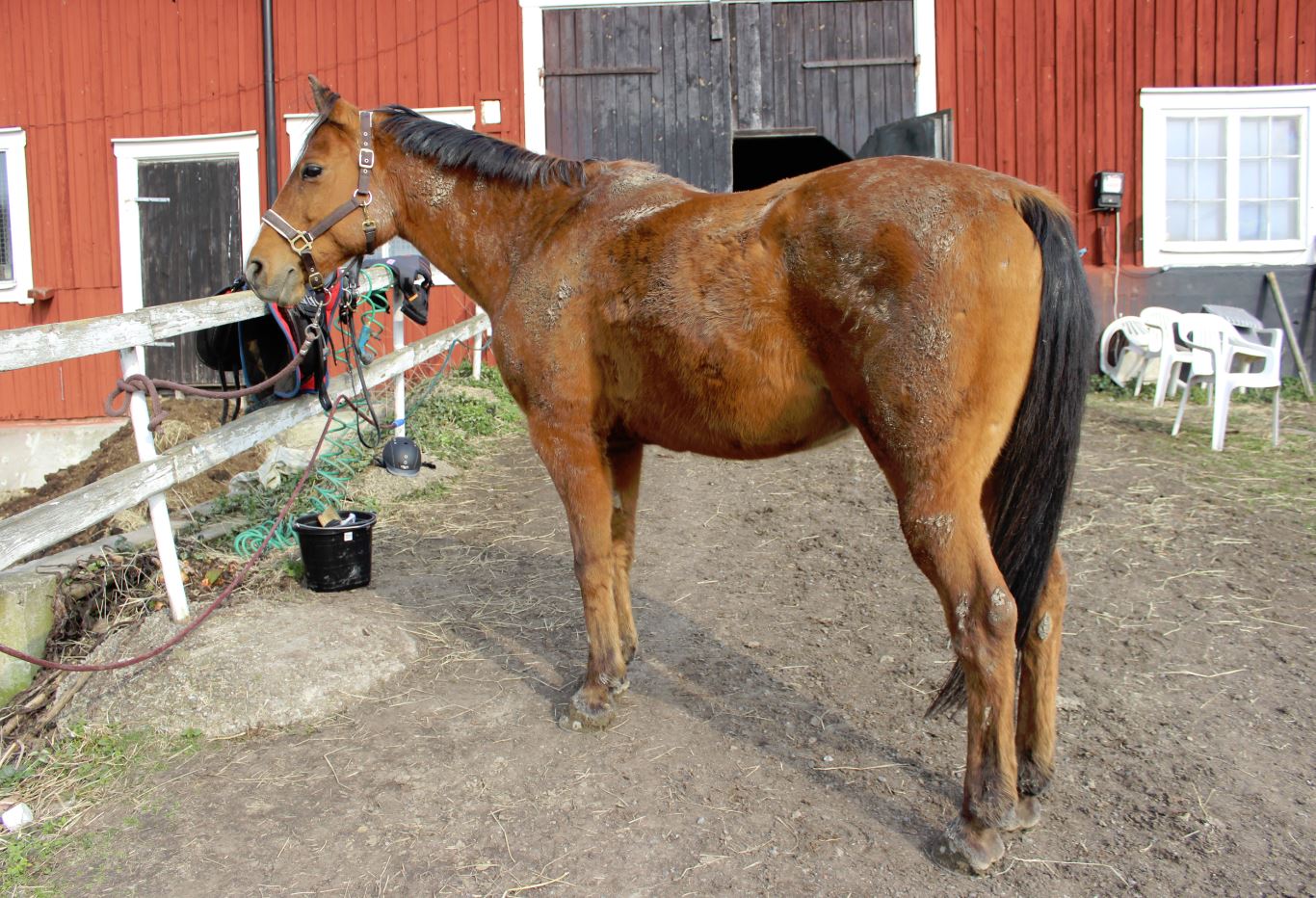 Piggborsten är min bästa vän! Och Magic Brush. Och mjuka borsten. Och ryktborsten. Och skrapan. När hästen ser ut sådär får man ta till alla redskap man har 😉