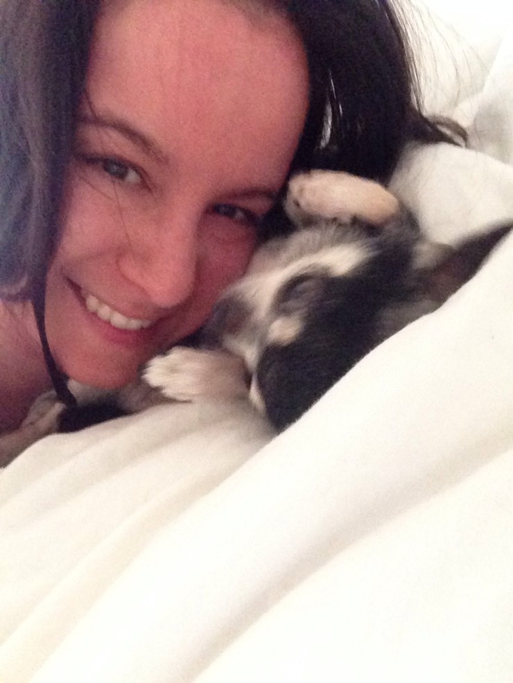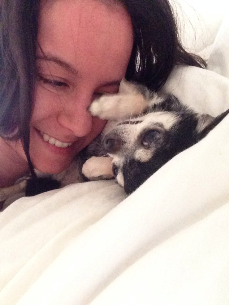 De här bilderna är från förra helgen när Andreas var borta. Då blev det extra mys i sängen! Sintra får inte sova i sängen men ibland tar vi upp henne när vi ligger och drar oss på helgmorgnarna. Det är livet hälsar Sintra 😉