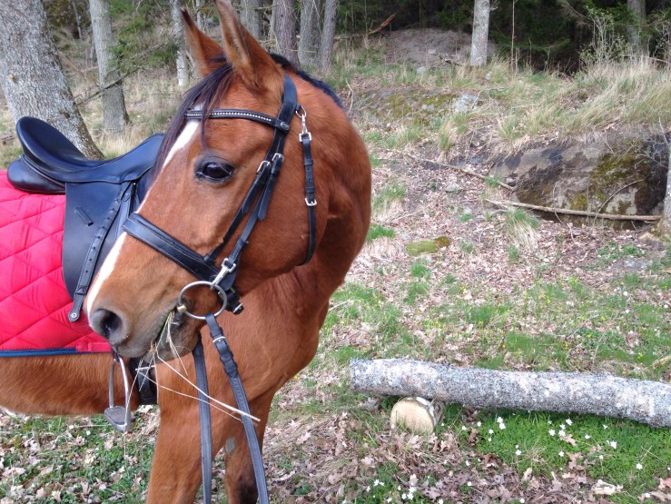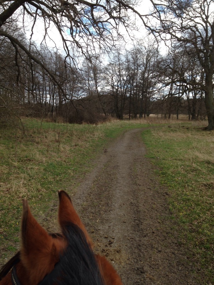 Därför har vi de senaste gångerna jag ridit tagit det lugnt och lagt ner alla krav. Vi har framförallt skrittat (både ute och på banan) och fokuserat på att hitta ett samspel. Mycket övergångar skritt-halt-skritt-halt. Även skritt-trav-skritt. När vi har ridit ut har han även fått galoppera några sträckor som han älskar men det har varit viktigt att jag känner att han lyssnar och inte bara ”sticker”.