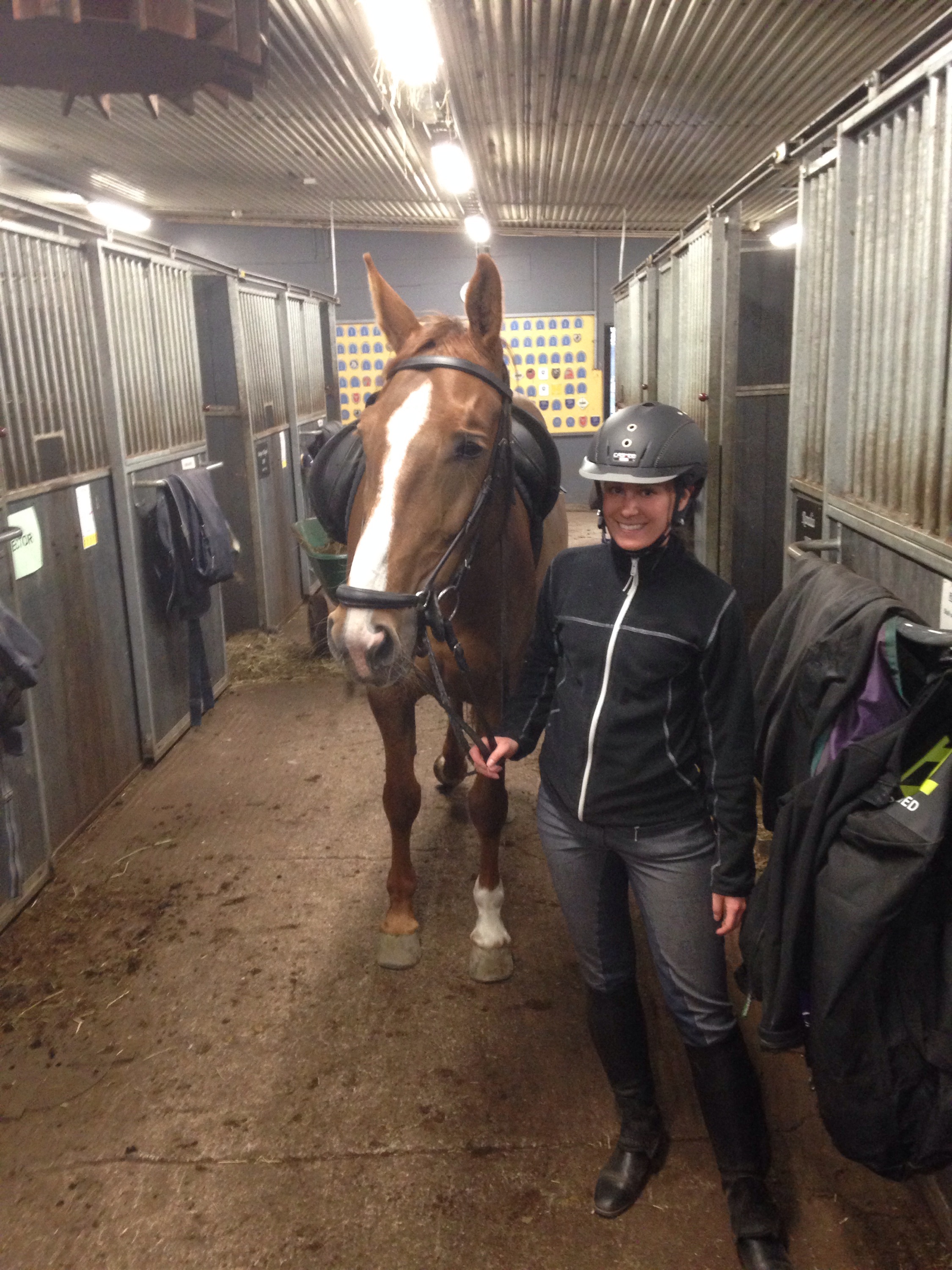 Igår var der dags för lektion på ridskolan igen. Jag fick rida Randia, ett sjuårigt sto jag inte hade bekantat mig med tidigare. Randia var trevlig men väldigt framåt och lite ”ångvält” om ni förstår hur jag menar? Ganska känslig för sidförande hjälper men går på som tusan framåt. Jag hade svårt att hitta ett mellanläge i traven till exemel, hon var antingen av (d.v.s. skritt) eller på (snabb trav). Svårt!