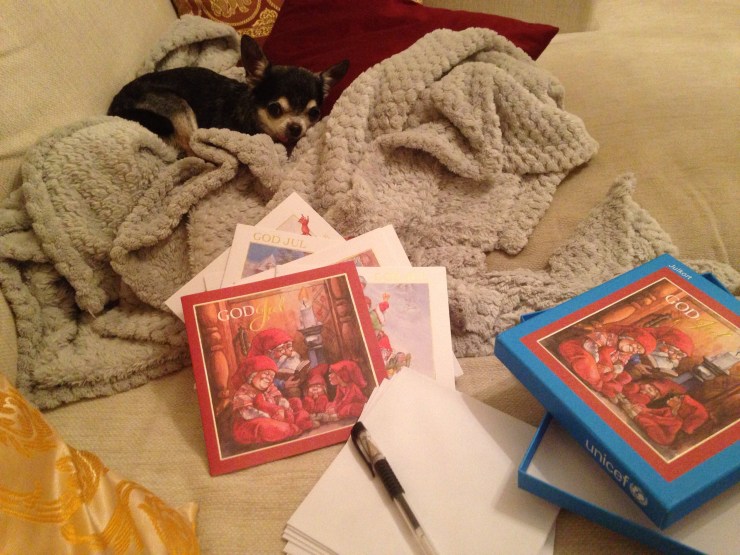 Skickar ni julkort? Jag köper sedan ett par år tillbaka mina julkort från Unicef. Då bidrar man med pengar till deras verksamhet, 25 kronor per box om 10 vykort. Det finns många julkort som påstår sig skänka till välgörenhet men då ofta betydligt lägre belopp. Men – allt är bättre än inget så klart! Vill bara tipsa er 🙂