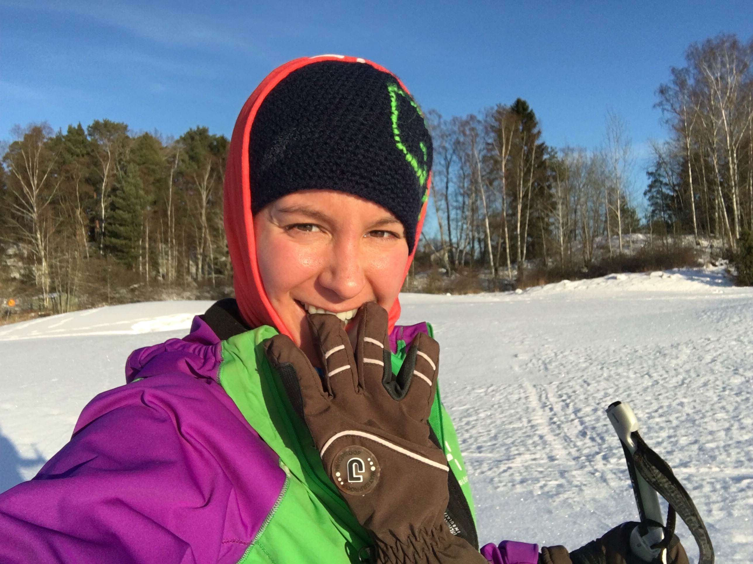 Och så här glad var jag att jag valt de tjocka ridhandskarna istället för tunna skidhandskar 👍