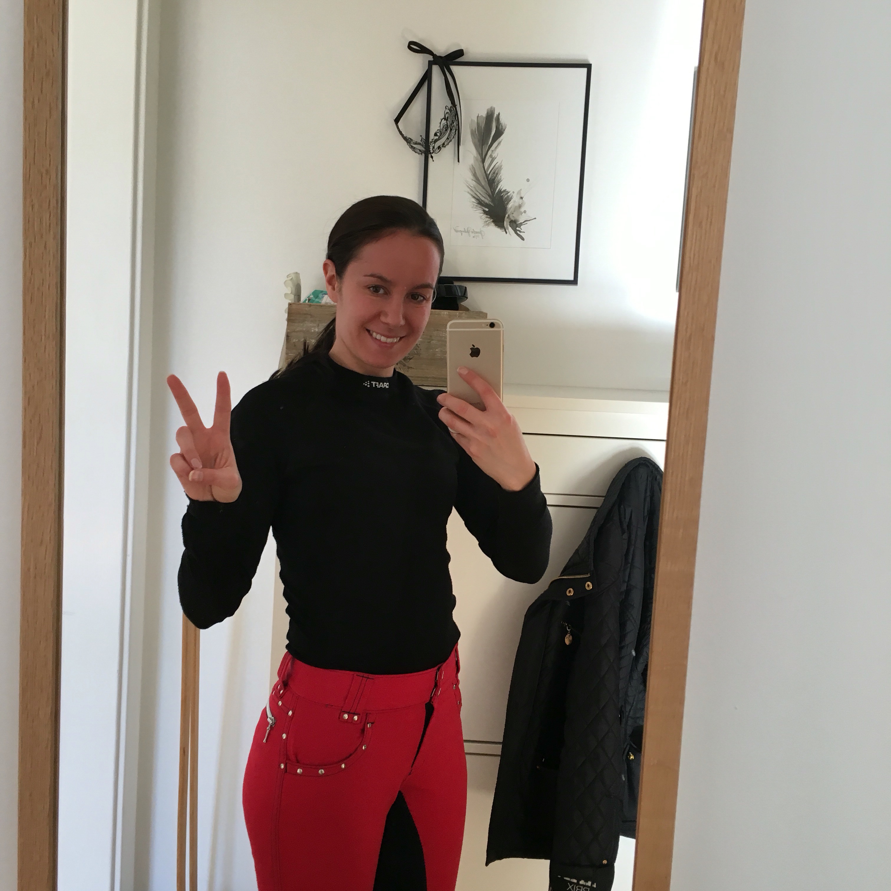 På lördagens hopplektion blev det en till synes väldigt enkel övning. Två hinder med kanske 6 galoppsprång emellan pp rakt spår. Om Santina var hoppglad under markarbetet så var hon hopptokig nu, haha! Hon tog i och FLÖG över redan första försöket då vi bara skulle trava över…. Så då skulle jag hålla tillbaka henne lite nästa gång och då… Vägrar hon istället. Haha! Det är inte lätt hörrni, här gäller det att hitta precis rätt läge där man skänklar på för att visa att jodå, vi ska fram och över, men samtidigt inte för mycket.
