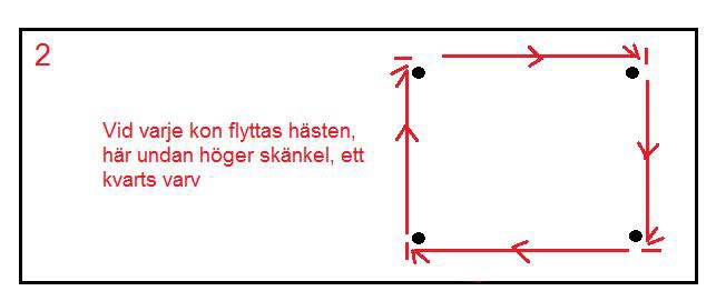 Vi jobbade också på volter med att öka och minska volten. Här använder man också sidförande skänklar (sina ben) för att förflytta hästen inåt och utåt.