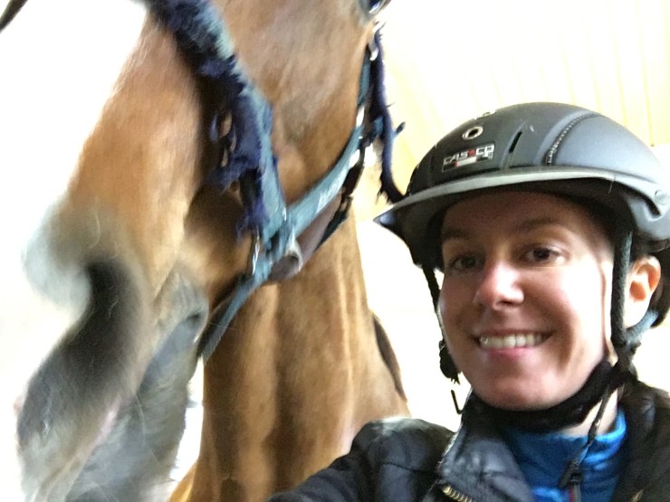 Det jag tar med mig från dagens lektion är helt klart den där magiska traven, de små osynliga hjälperna och att jag måste hålla koll på mina händer/handleder så att de inte faller ihop. Och i galopp utan stigbyglar måste jag våga släppa ner benen, det blir lätt så att man liksom ”håller om” och liksom klamar sig fast och det säger ju sig självt att det inte är särskilt smart 😉