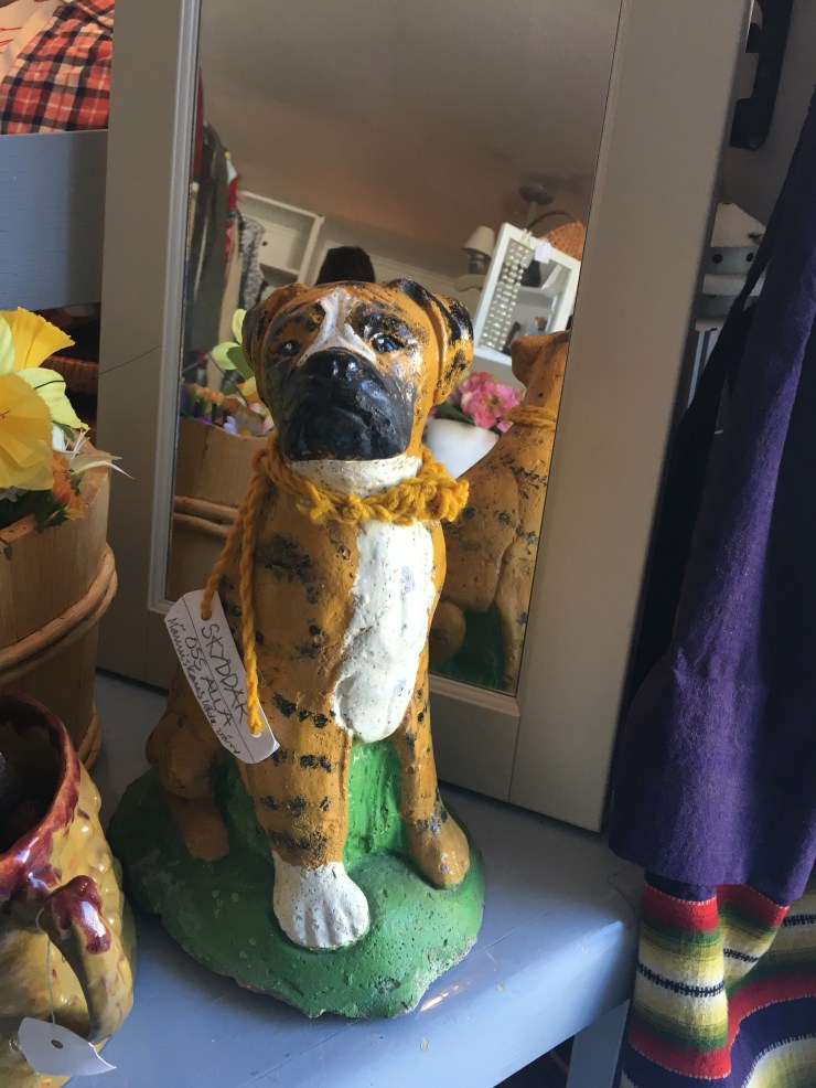 Visst är han charmig, boxern? Kan inte bestämma mig om han ska få flytta ner till Stockholm med oss? 285 kr kostar betonghunden. Vad tycker ni? 😊