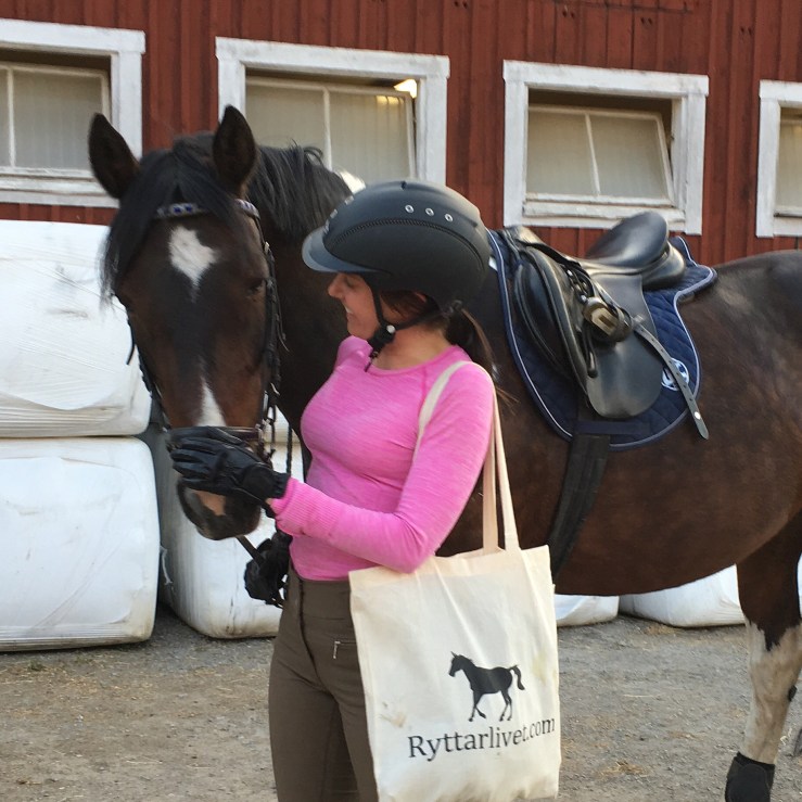 Instruktören tyckte att jag hade utvecklat sedan sist han såg mig i alla fall, för ett par månader sedan, så det var kul att höra! Dock måste jag UPP MED BLICKEN vilket han sa flera gånger. Jag måste våga känna vad hästen gör, utan att titta. Och bara för att hästens huvud är ställt något nedåt åt höger så behöver inte mitt huvud också vara det 😉