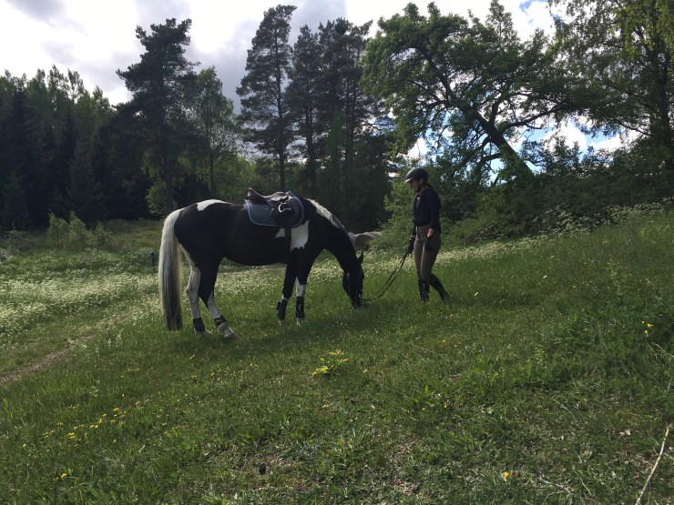 Lorre var hur snäll som helst och lyssnade toppenbra! Inga konstigheter alls (innan hade jag tänkt att jag nog inte skulle våga galoppera men jag kände att vi hade bra kontakt och det stämde ju!). Efter den enligt mig sista galoppen bestämde sig dock Lorre för att han ville galoppera mer och var lite popcorn i tre sekunder 😜 Men jag satt lugnt kvar och väntade ut honom och han lugnade sig snart.