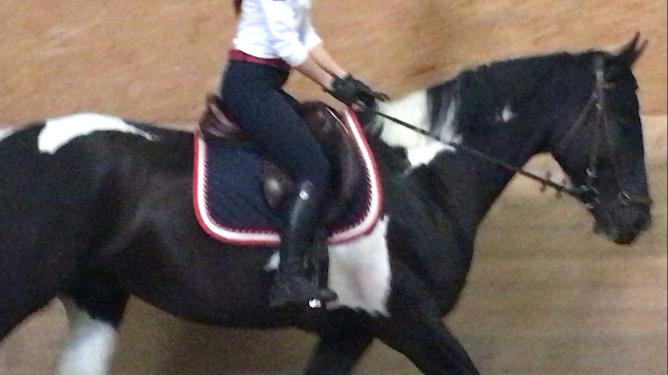 När vi sedan började trava så går Lorre från segskritt till springtrav. Ingen kvalitet utan han bara öser på i stil med ångvält. Här blev fokus att ta med det jag lärt mig om kall- och varmvatten i tyglarna och med sätet försöka lugna ner traven till ett läge där han lyssnar på mig och börjar jobba mer med bakbenen. Jag kan väl inte säga att vi riktigt kom dit under denna första lektion men en bit på vägen i alla fall!